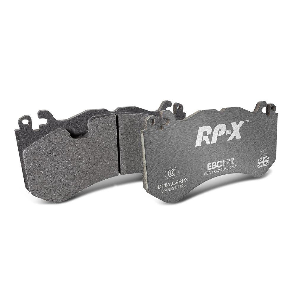 EBC Racings' RP?X compound is an ultra?high performance track and race pad designed for performance vehicles driven hard on track and for dedicated race cars. RP?X has a very stable friction coefficient of 0.55? up to and beyond 850?, making it an excellent performer for even the most demanding vehicle applications. RP?X also has a high friction level from cold, requiring no warmup to achieve maximum braking effect which makes this material well suited for sprint race and hill climb events. Although RP?X is not R90 homologated for use on the public roads in EU member states, the fact this material possesses excellent cold performance means RP?X can be safely used for driving to/from motorsport events (where local laws permit).