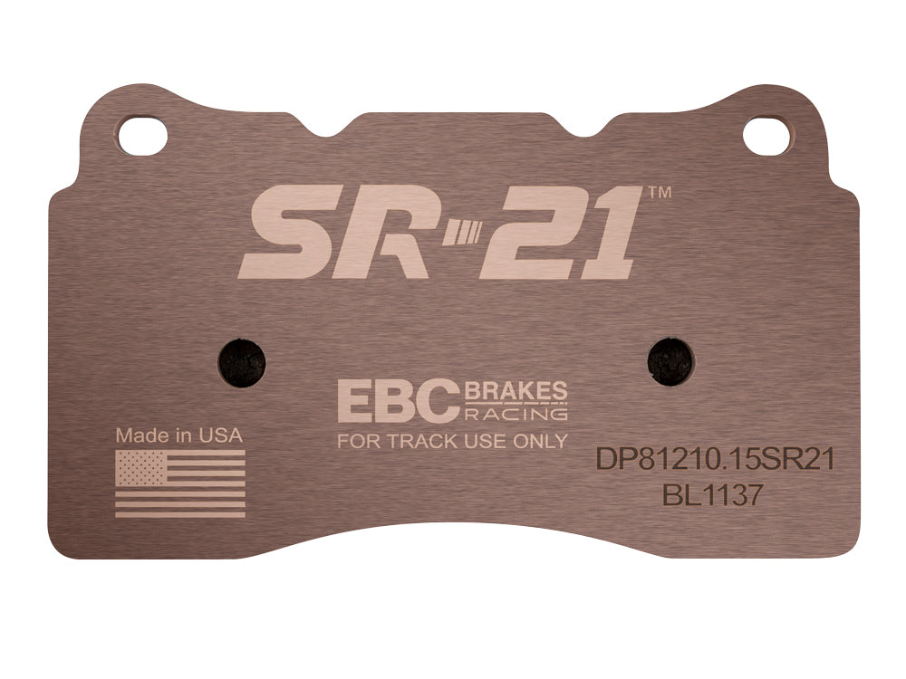 EBC Sintered SR21 Pads OverviewEBC Sintered SR pads are in a class of their own, made in the USA plant of EBC Brakes. The SR21 bites harder and lasts longer than any other option without damaging rotors. While there have been a few sintered pads around in the past, none compare to these.Utilizing advanced transfer film technology, disc wear is almost totally eliminated. Being a hard pad in compressibility terms means that pedal feel is also improved, providing better and more responsive braking.The wear life of the SR21 pads is exceptional, with tests showing a lifespan that is 3-5 times longer than competitor semi-metallic pads.