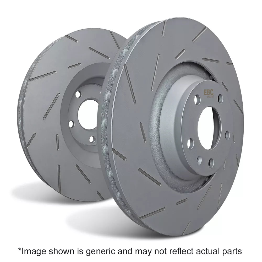 Super quiet sport slotted brake discs featuring the new EBC Brakes narrow profile slot pattern which helps cool and de-gas brakes under load and speed but eliminates air noise common with some slotted discs. All EBC USR sport discs are now made using R90 approved rotor blanks and are corrosion coated with either Gen 1/2/3 finish. For 2023 all EBC discs will feature the Gen 3 silver Geomet finish to match OE hubs